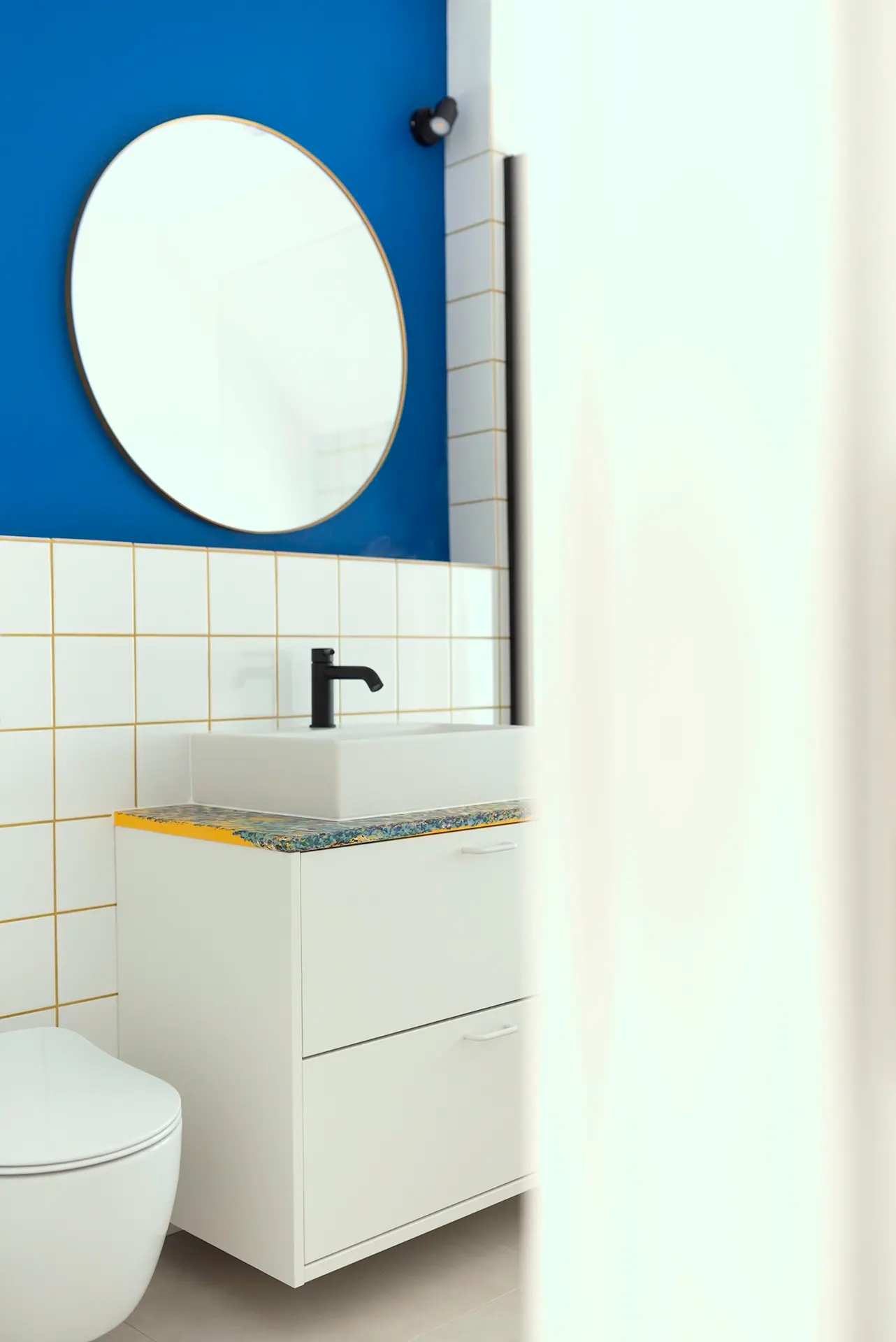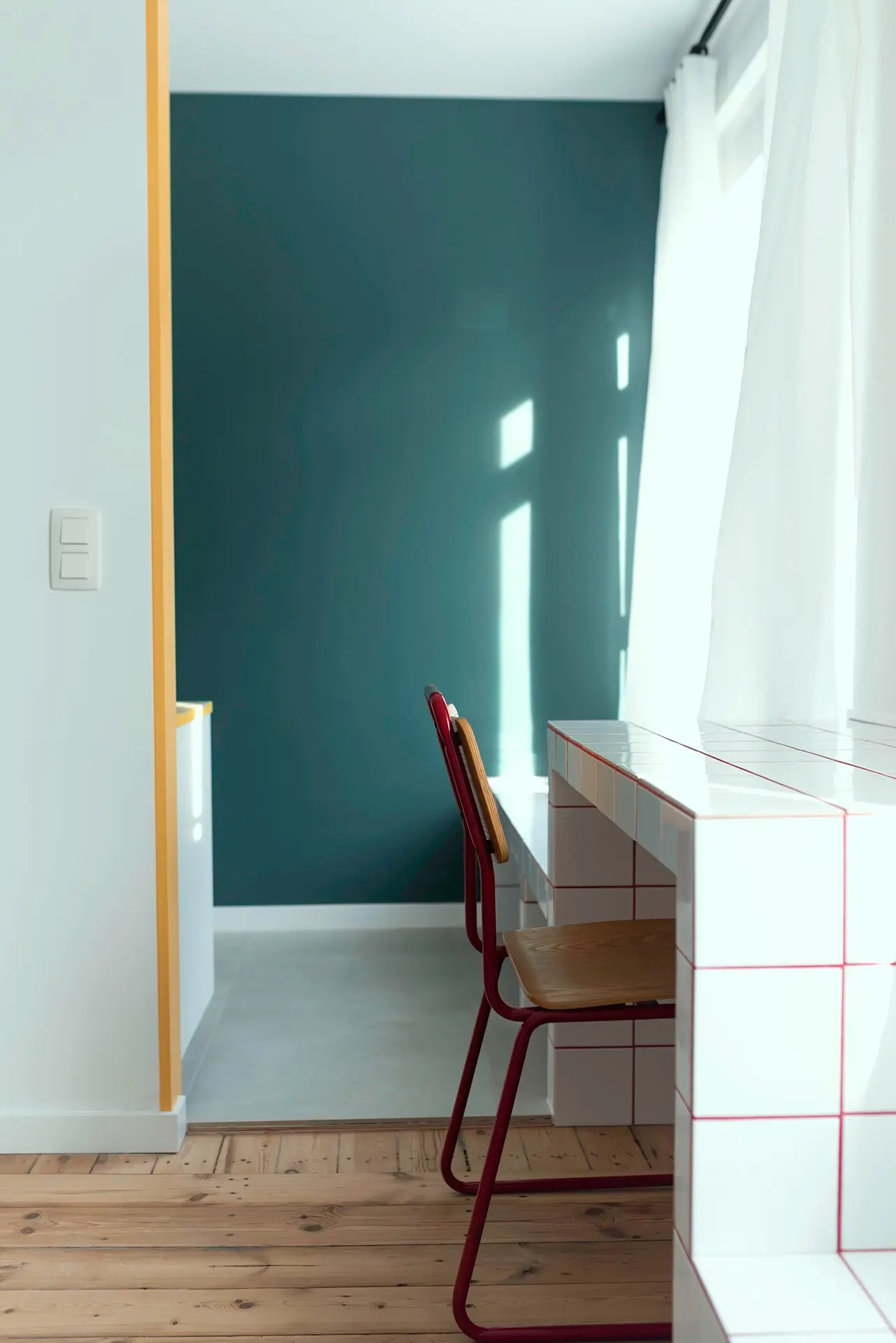 Cette inspiration est, à n’en pas douter, facilement réplicable dans une maison unifamiliale, et ce que ce soit dans les mêmes coloris ou dans des tons complètement différents.