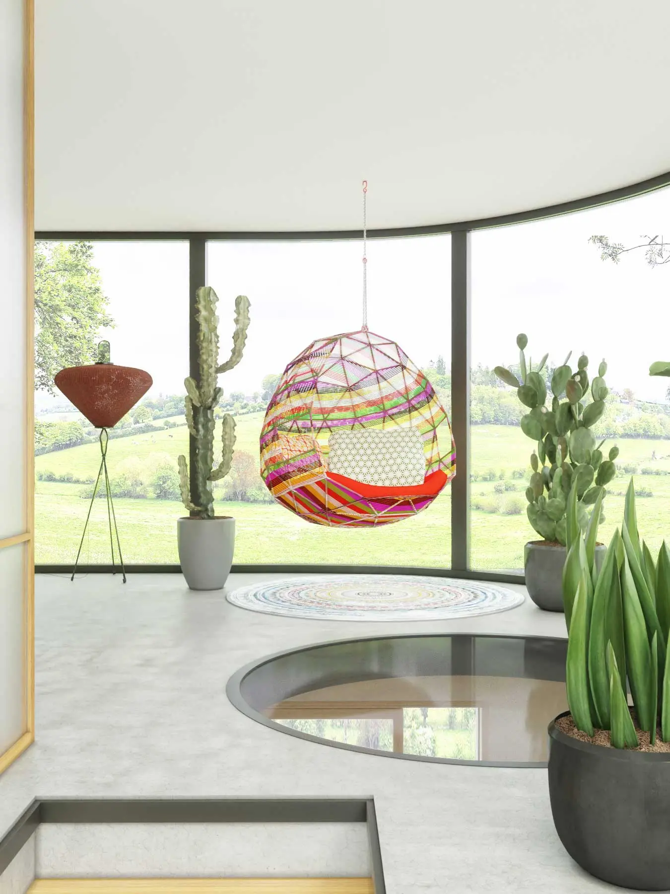 Surprenant mélange de tonalités fortes et denses, mêlées de transitions chatoyantes et lumineuses. Une fusion entre la culture « zen » japonaise et les couleurs de l’artisanat péruvien.