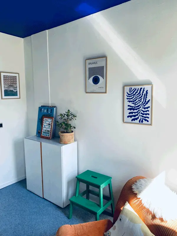Om wat kleur in haar huis te brengen zonder al te veel kosten, besloot Élodie een diepblauwe kleur op haar plafond aan te brengen. Ze koos voor onze Decor Matt, een afwrijfbare, perfect egale verf die baanvorming vermijdt dankzij de Siloxane Technology.
